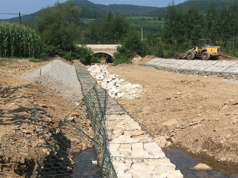 靖邊縣綠格石籠網(wǎng)又稱“靖邊縣格賓網(wǎng)”、“靖邊縣石籠網(wǎng)”,由各種網(wǎng)孔規(guī)格的綠格石籠網(wǎng)片按照ASTMA975-97規(guī)范組裝而成,工程現(xiàn)成填充石料組裝形成柔性的、透水的、整體的支擋結(jié)構(gòu),常用于生態(tài)防護(hù)工程。該結(jié)構(gòu)采用高鍍鋅鋼絲或者10%鋅鋁合金鋼絲經(jīng)過(guò)雙線絞合編織而成的,其雙線絞合部分的長(zhǎng)度不能低于45㎜,以保證絞合部分的防腐性能不被破壞。如果環(huán)境比較惡劣,污染比較嚴(yán)重,可以再鋼絲的表面涂塑(包PVC)增強(qiáng)鋼絲的抗腐蝕性能。